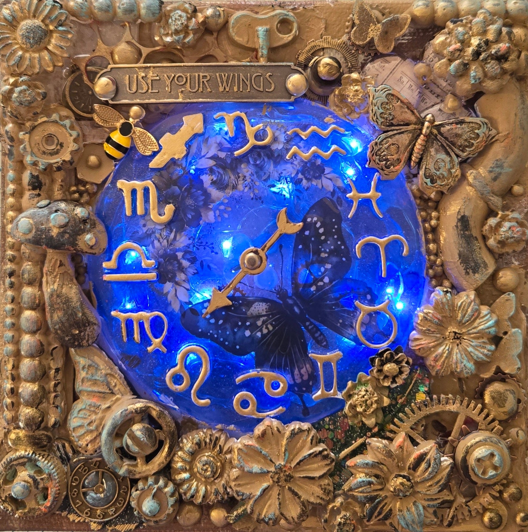 Add some celestial charm to your home with 'What's Your Sign?' LED lights illuminate this 6x6 astrology wheel, adding a unique touch to any room. Perfect for gifting (or keeping!), this chunky mixed media piece will elevate your decor. Handmade. Touchable!